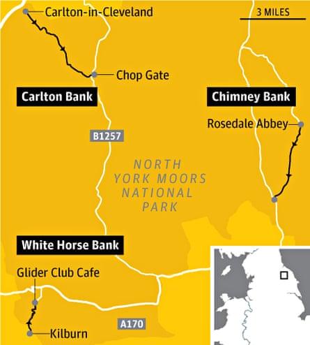 La route du Tour sera très fréquentée à l'approche de l'événement, mais si vous disposez de quelques jours, les routes des North York Mo ors ou des Wolds seront plus calmes. Hormis la Chimney Bank de Rosedale (175 m en 1,47 km, bit.ly/RhSyAB), il y a beaucoup de choses à apprécier dans cette région. À la limite nord-ouest du parc national se trouve Carlton Bank (190 m en 1,9 km, bit.ly/1qWB477), une montée magnifiquement affreuse depuis le village de Carlton-in-Cleveland qui offre de superbes vues sur Middlesbrough au nord - quand vous n'avez pas le nez collé au pneu avant. Plus au sud se trouve un vieux favori, White Horse Bank (168 m en 1,5 km, bit.ly/1n62z0D), une belle montée sinueuse et boisée qui mène à la station de vol à voile, où se trouve un bon café caché dans l'ancienne tour de contrôle.